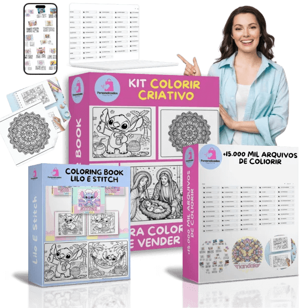 Com o nosso kit, você terá em mãos mais de 15.000 artes cuidadosamente selecionadas para você imprimir e colorir quando quiser, onde quiser, no seu ritmo.